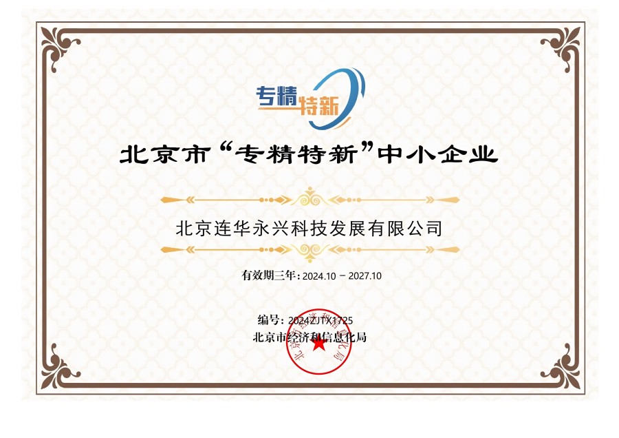 2024年10月份,北京市經(jīng)濟(jì)和信息化局發(fā)布了關(guān)于對北京市2021年度專精特新中小企業(yè)到期復(fù)核通過的企業(yè)名單進(jìn)行公告的通知,連華科技榜上有名,再次榮獲《北京市“專精特新”中小企業(yè)》榮譽(yù)稱號。